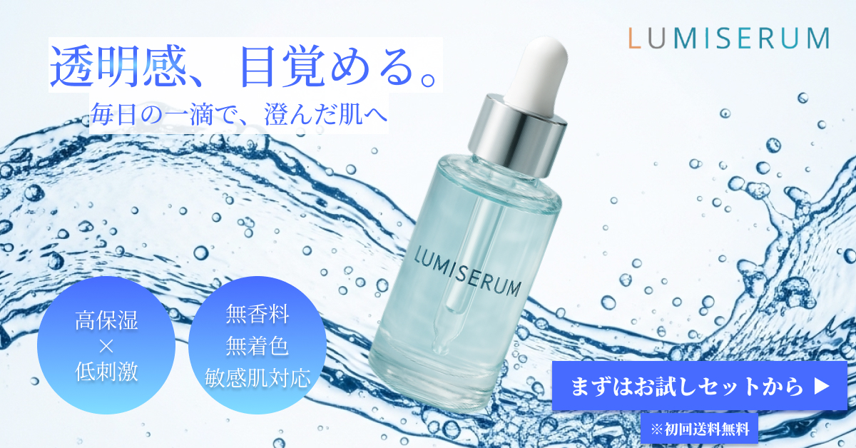 20〜30代の女性をターゲットにした、美容液の広告バナーです。SNS広告やECサイトでの訴求を想定し、「透明感」「清潔感」「肌へのやさしさ」をテーマに制作しました。
